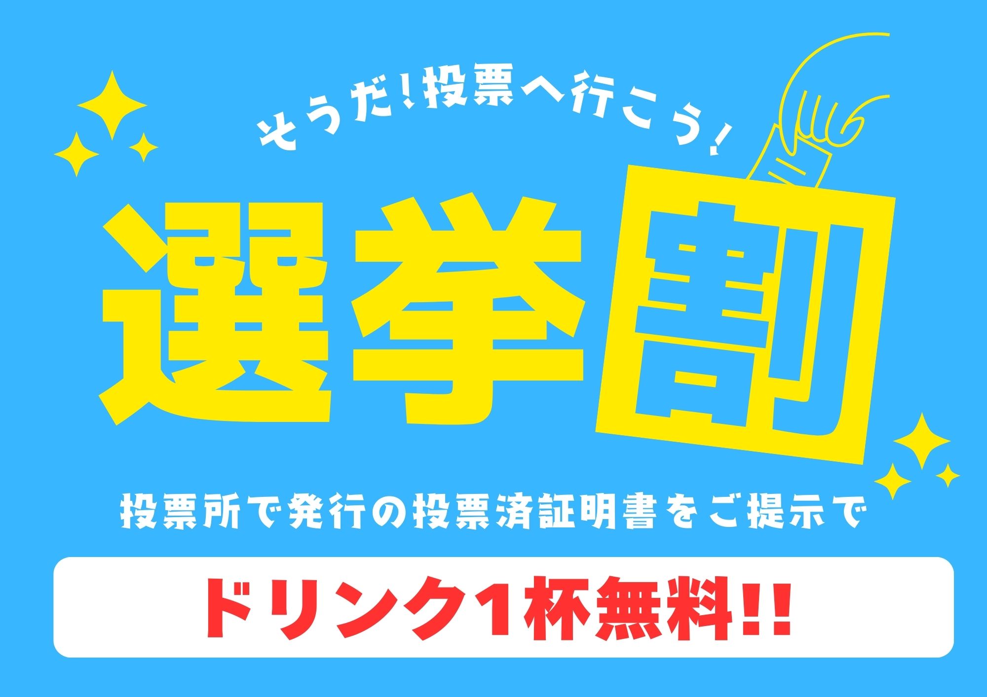 2/8は衆議院選挙の投票日です。投票証明書のご提示等を頂くと、以下の通りお飲み物を1杯サービス致します。